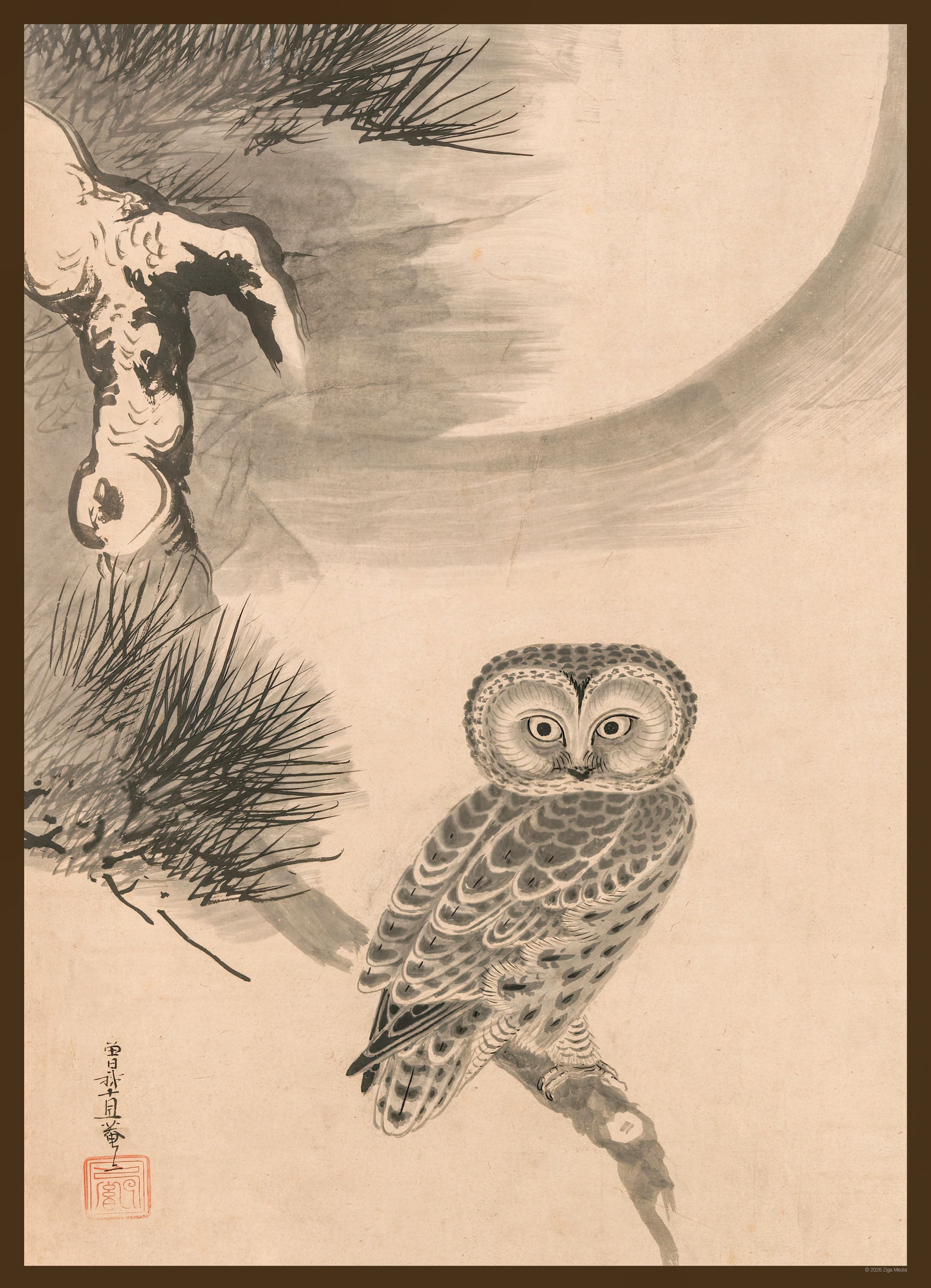 This puzzle invites you to contemplate the full moon through the eyes of Japanese master Soga Nichokuan and nighttime’s floating world (ukiyo-e)—though his woodblock print Owl on a Pine Branch.