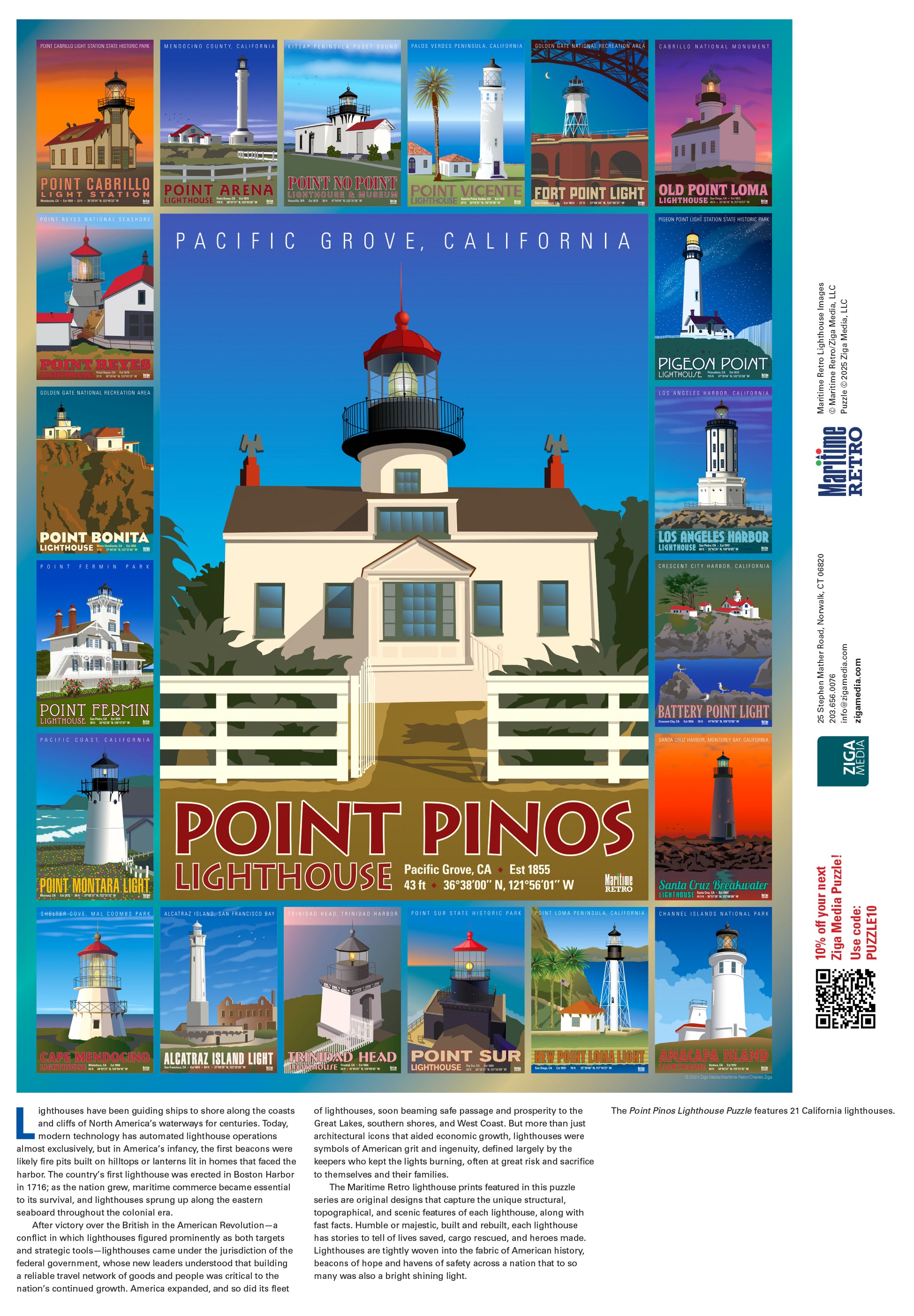The Point Pinos Lighthouses Puzzle features Point Pinos Lighthouse along with 20 other lighthouses from California.